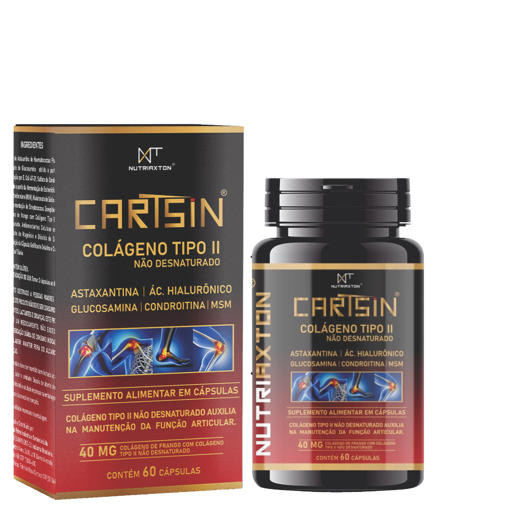 CARTSIN- COLÁGENO TIPO 2 COM ASTAXANTINA - Fórmula Ultra Premium - Suplemento Alimentar para articulações mais completo do mercado.